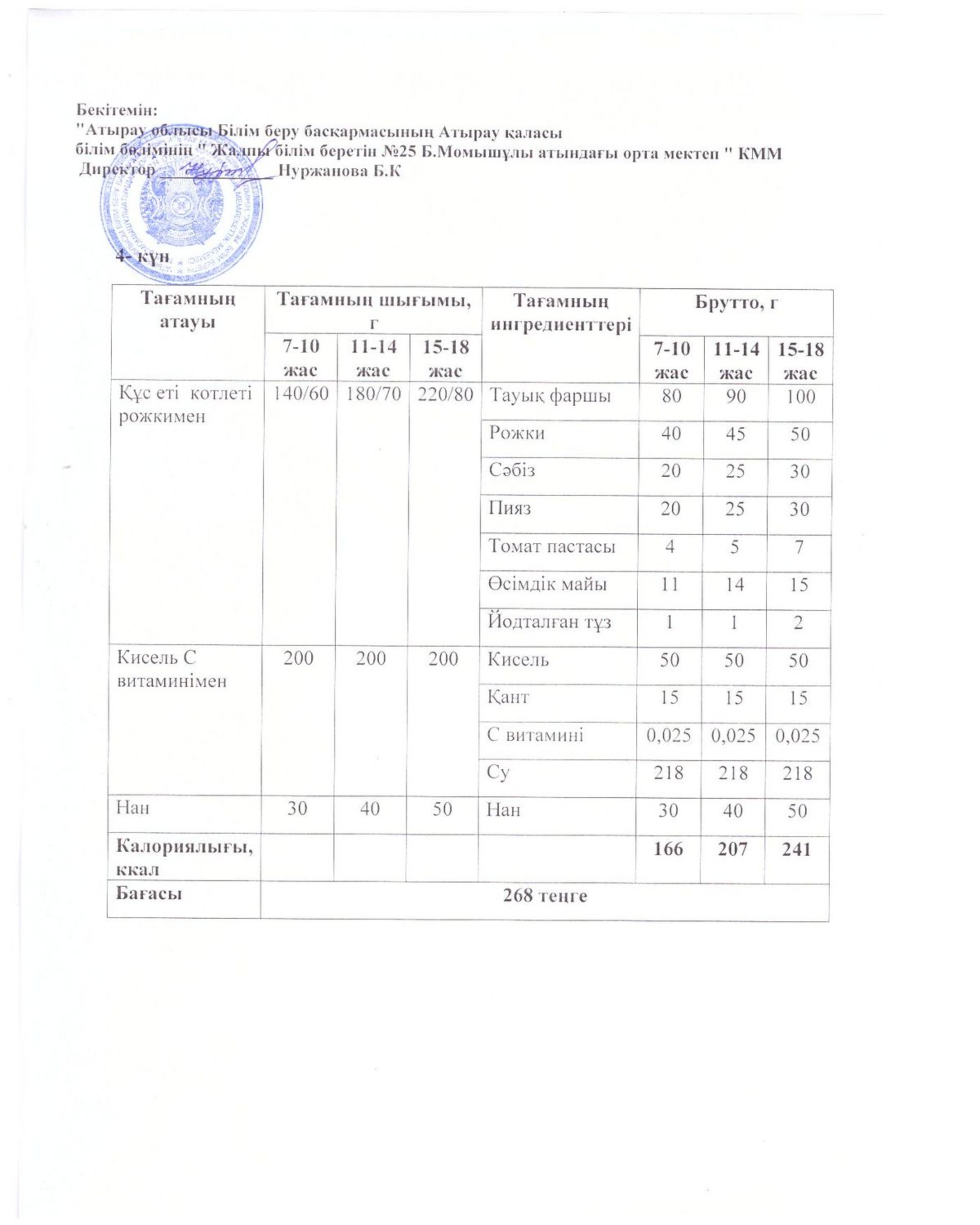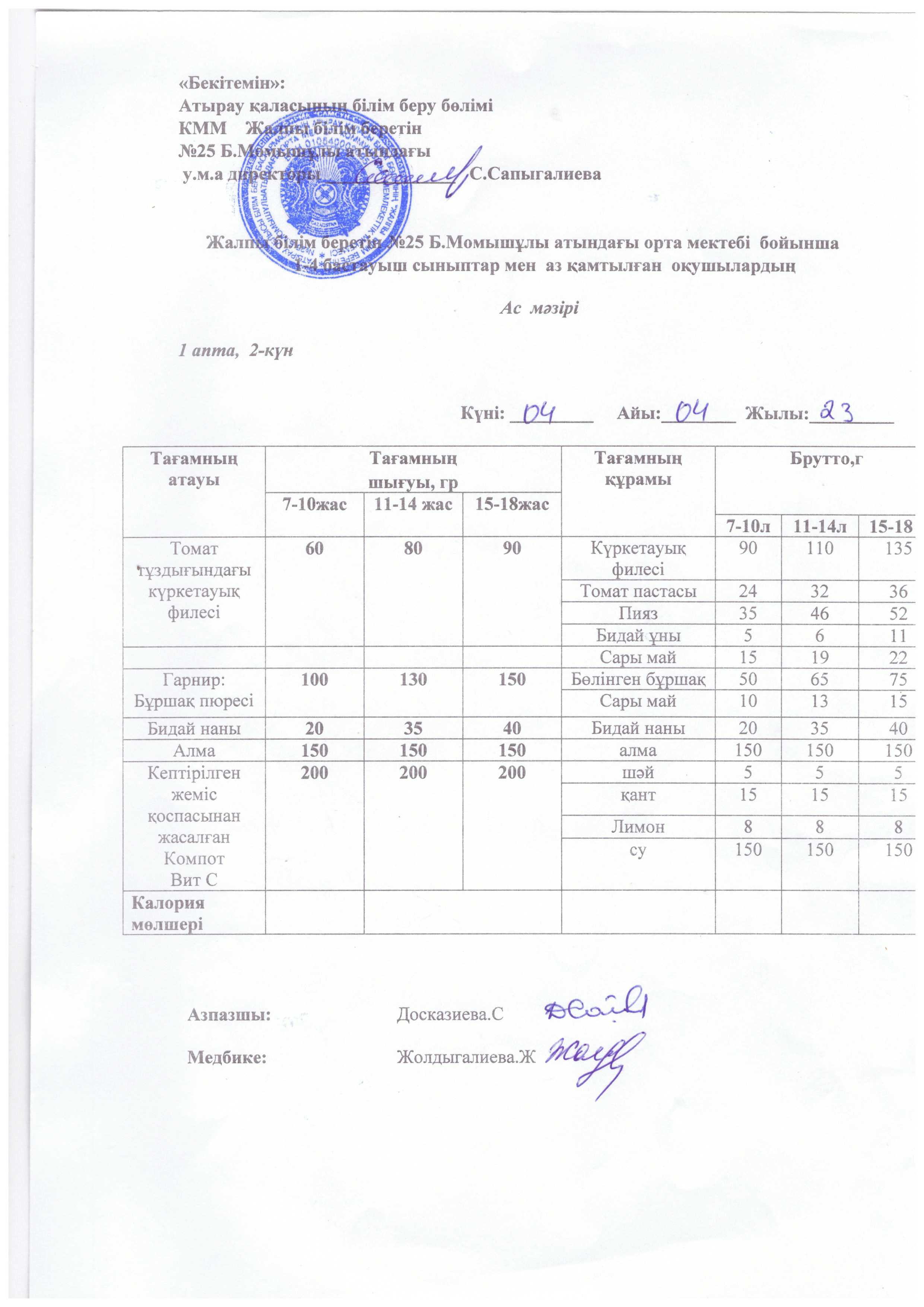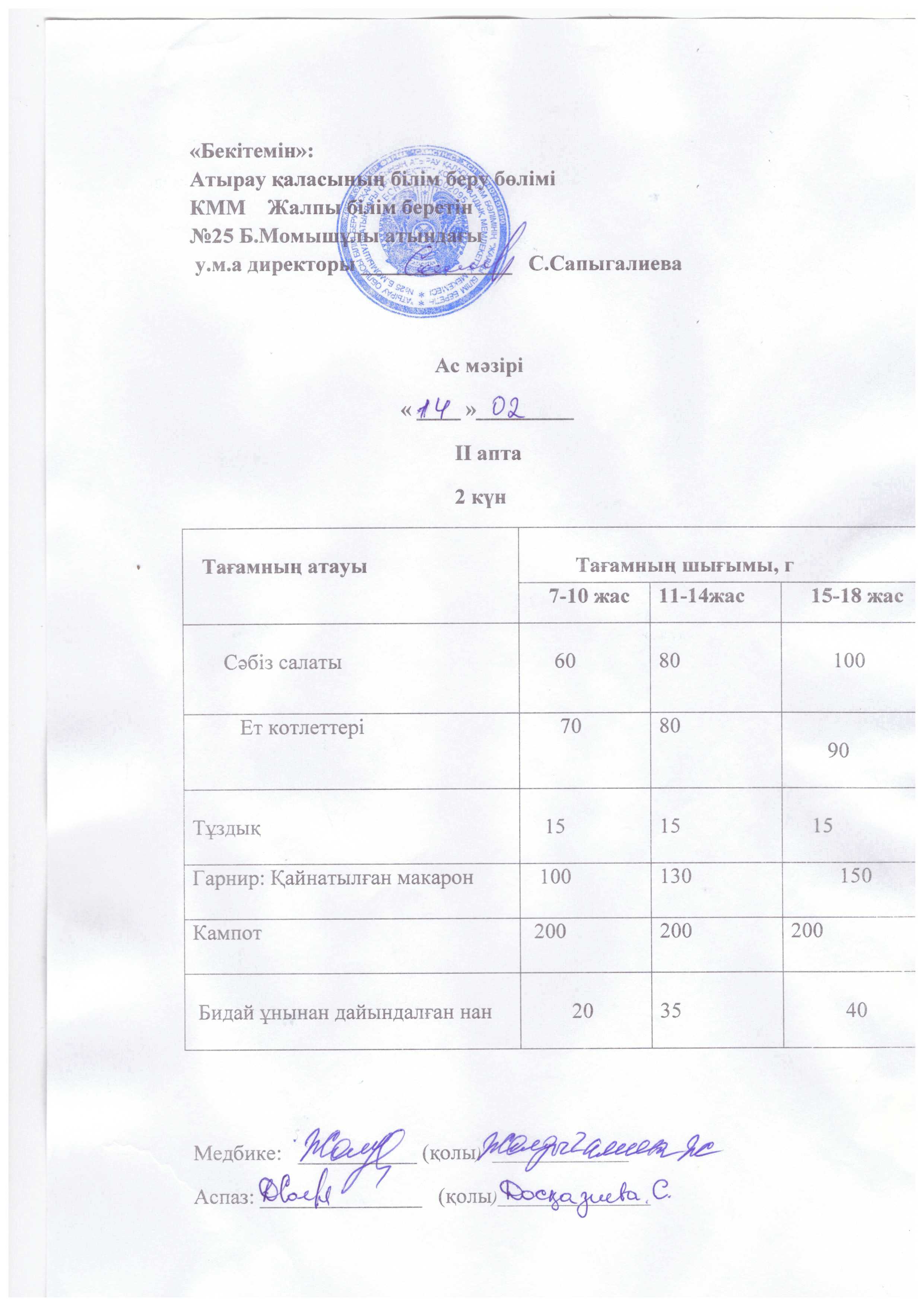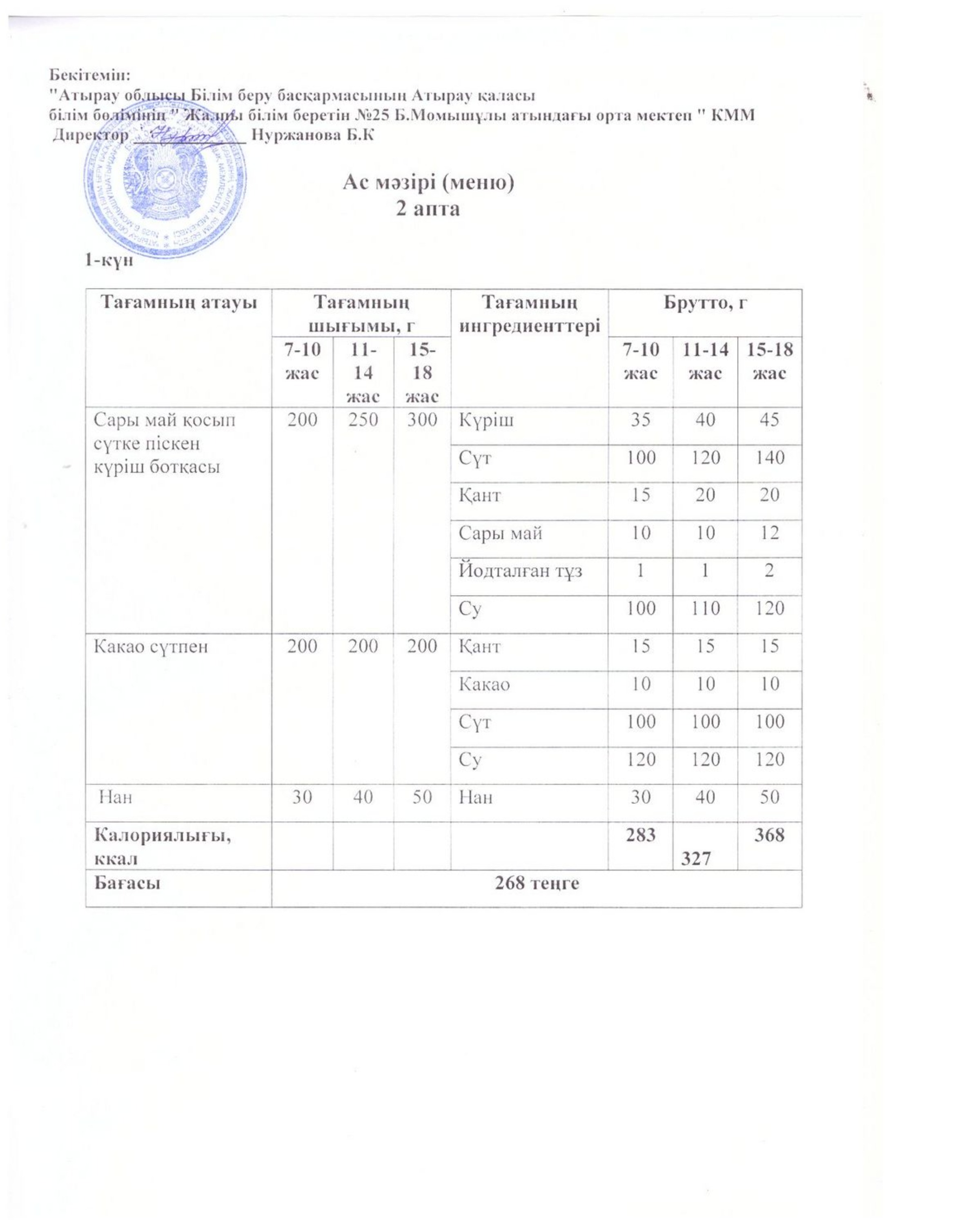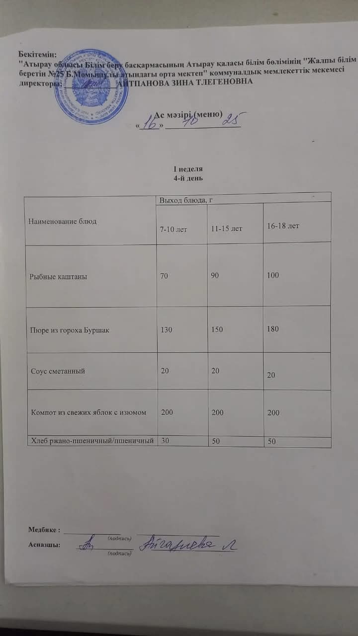 Бүгінгі ас мәзірі 16.10.2025