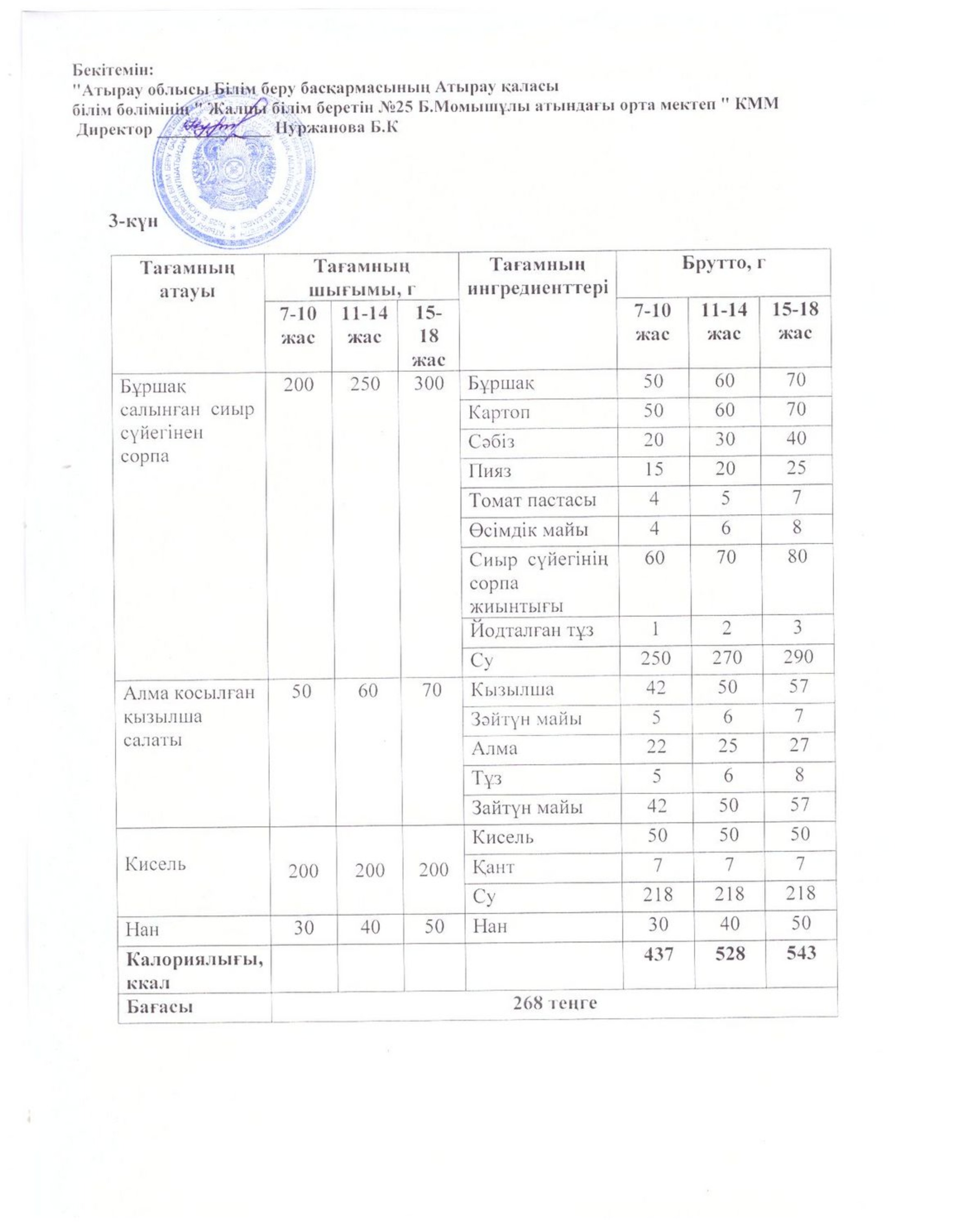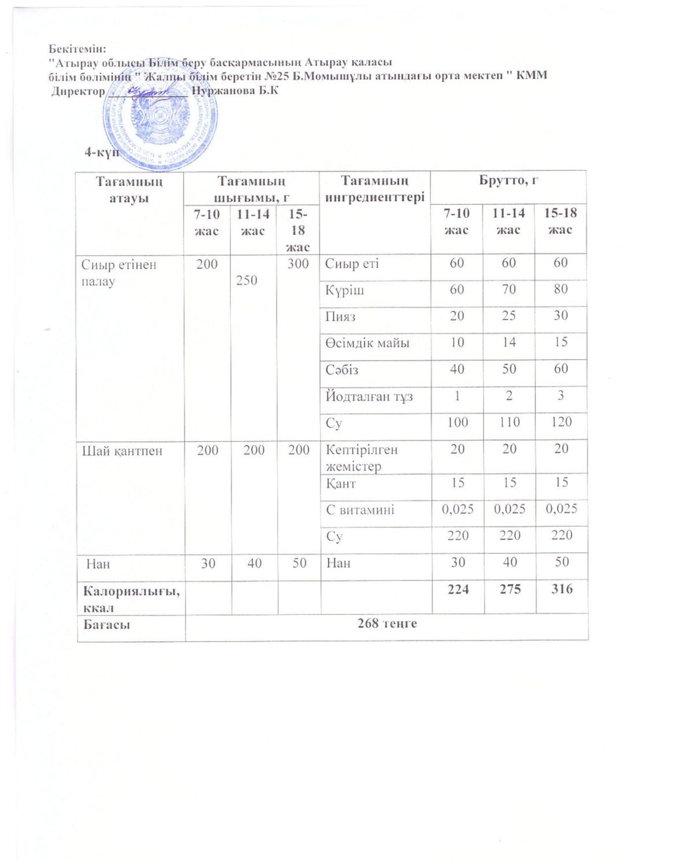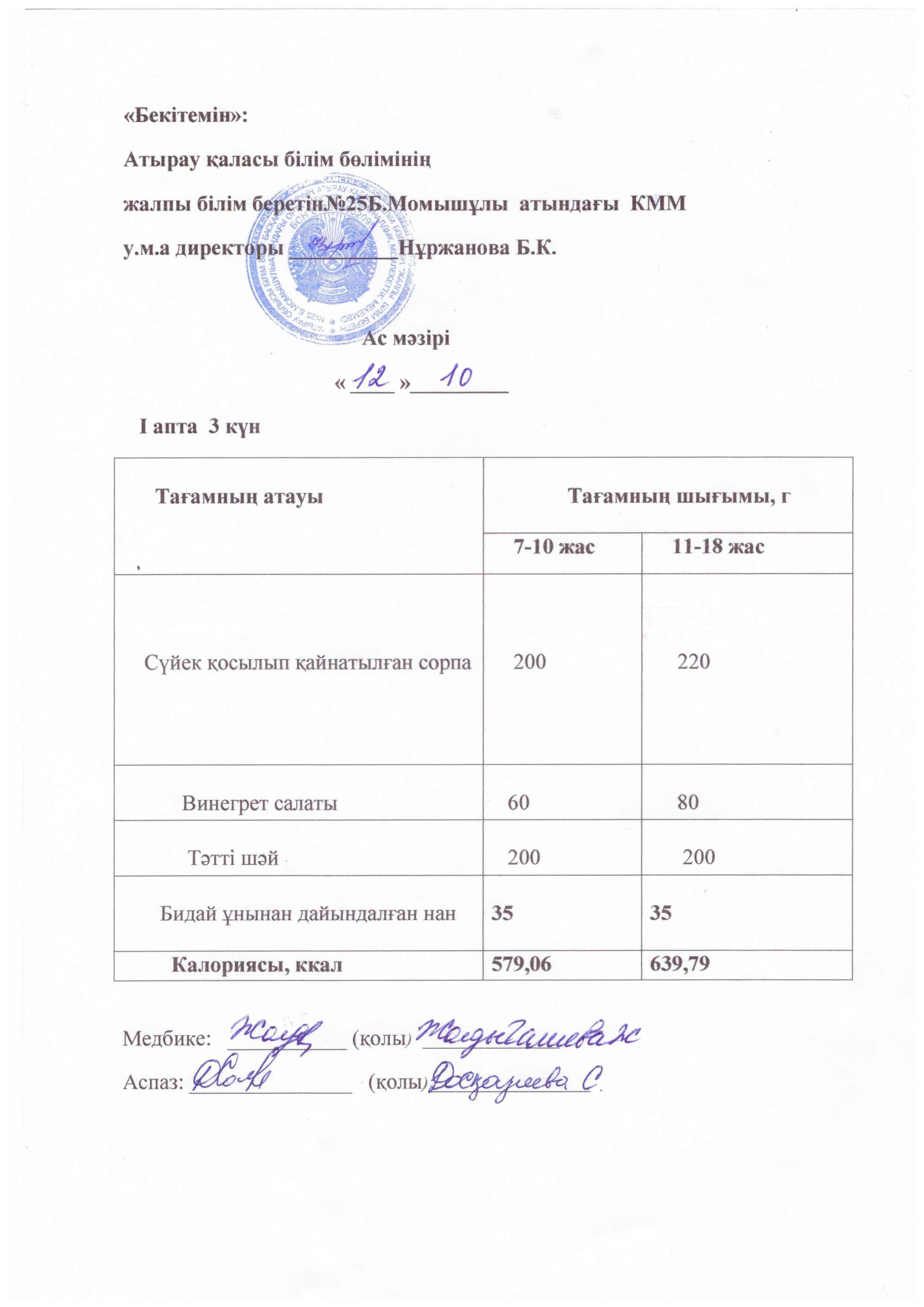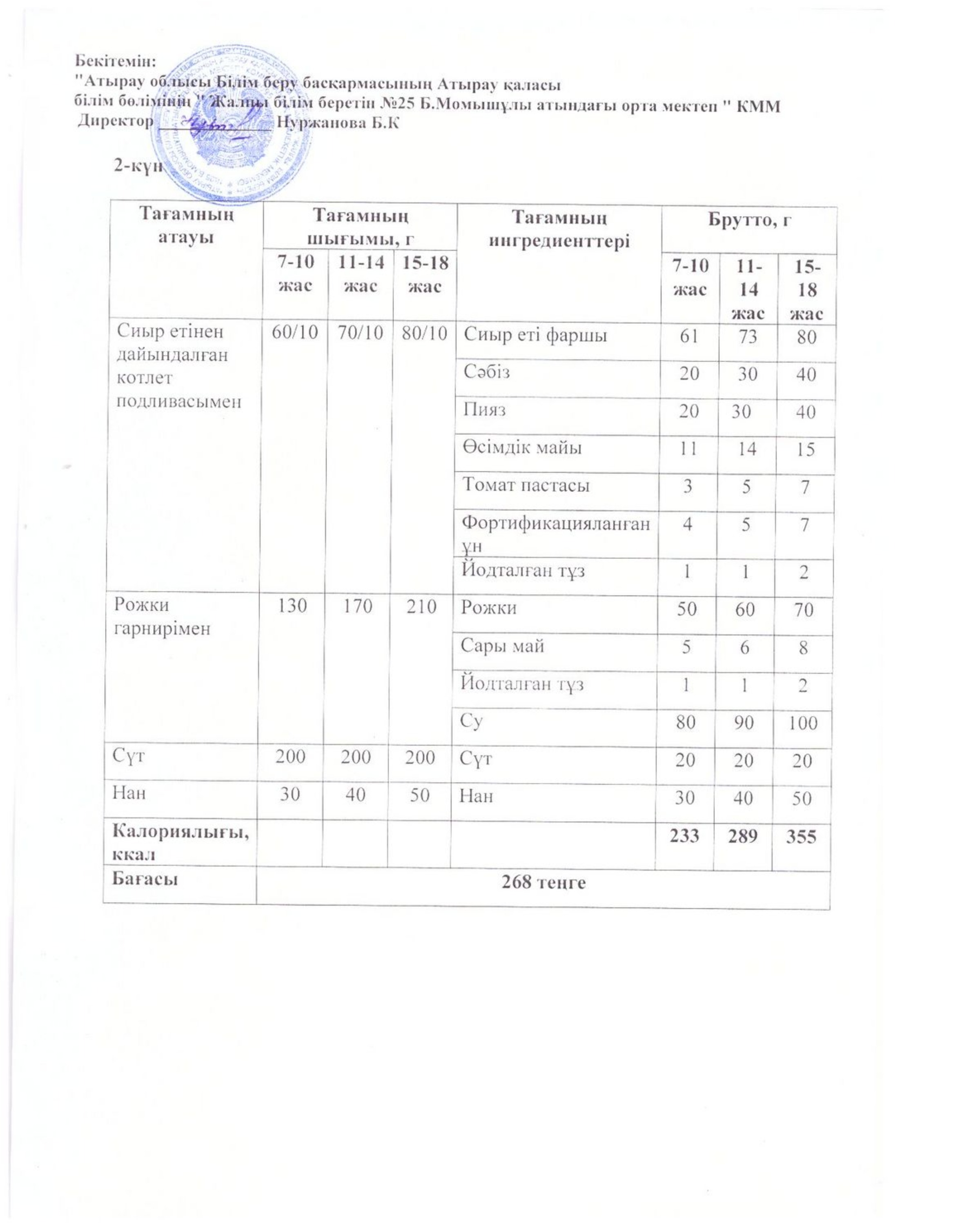 Бүгінгі ас мәзірі 16.10.2025