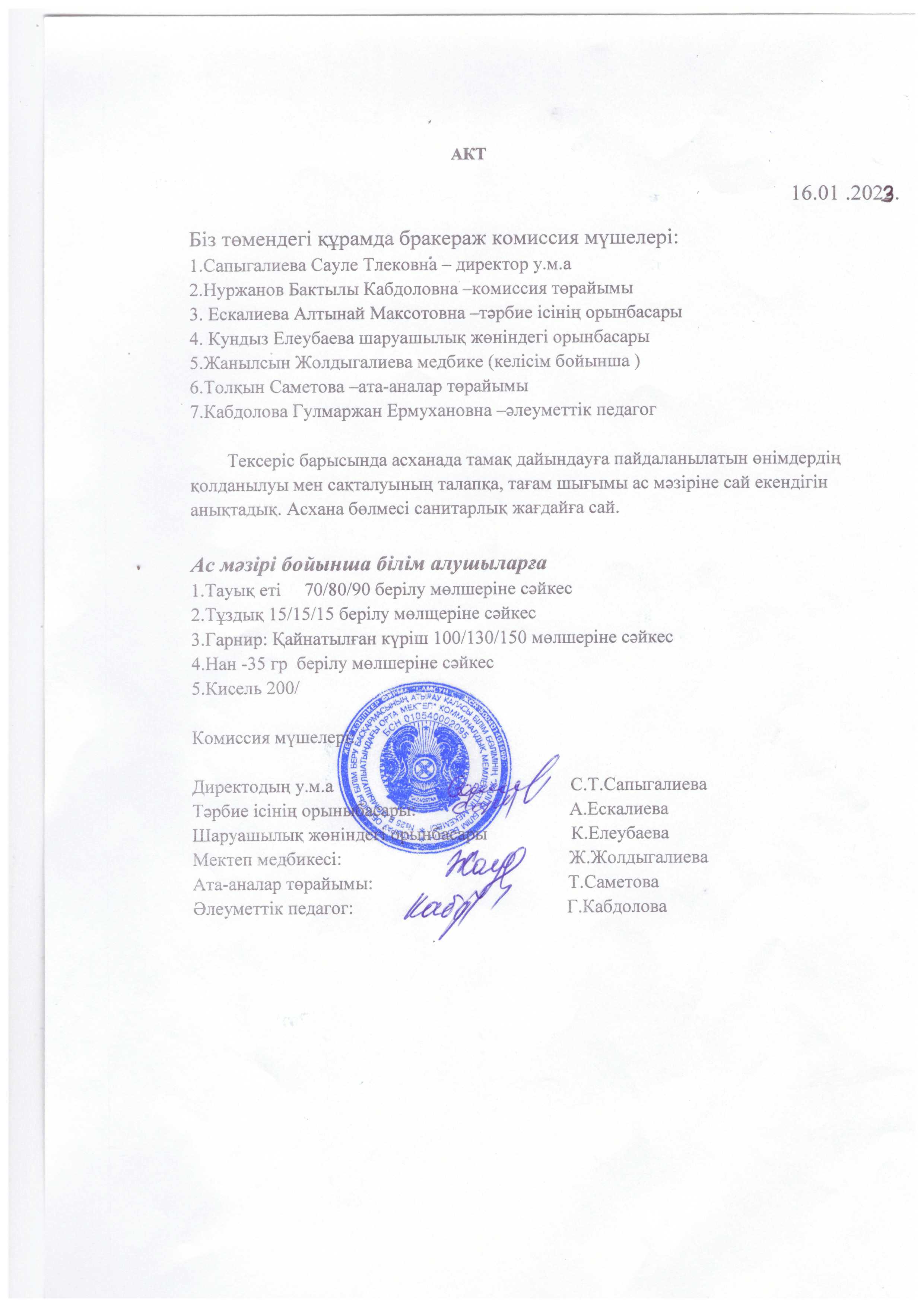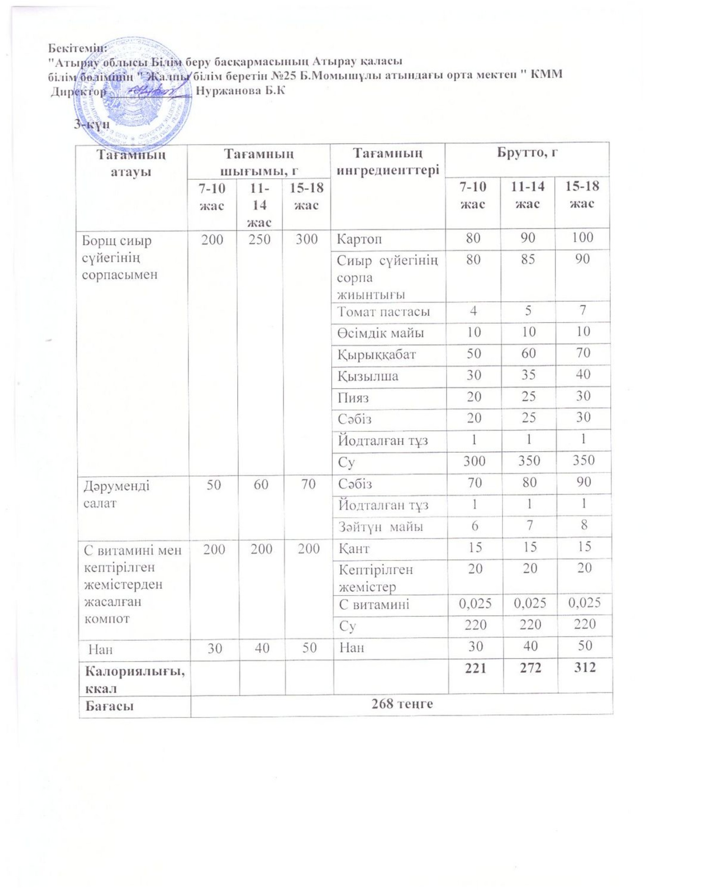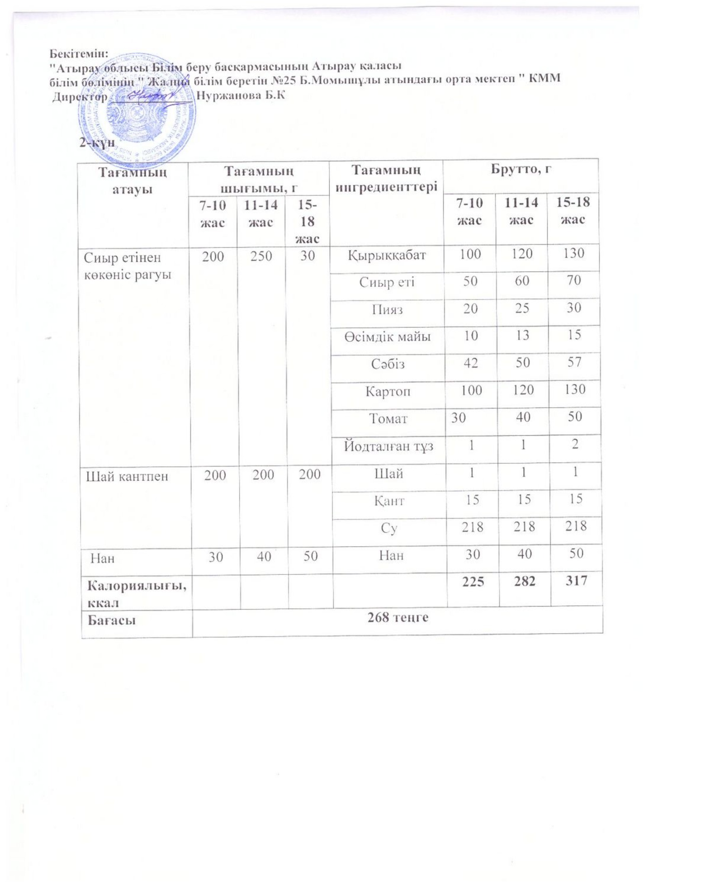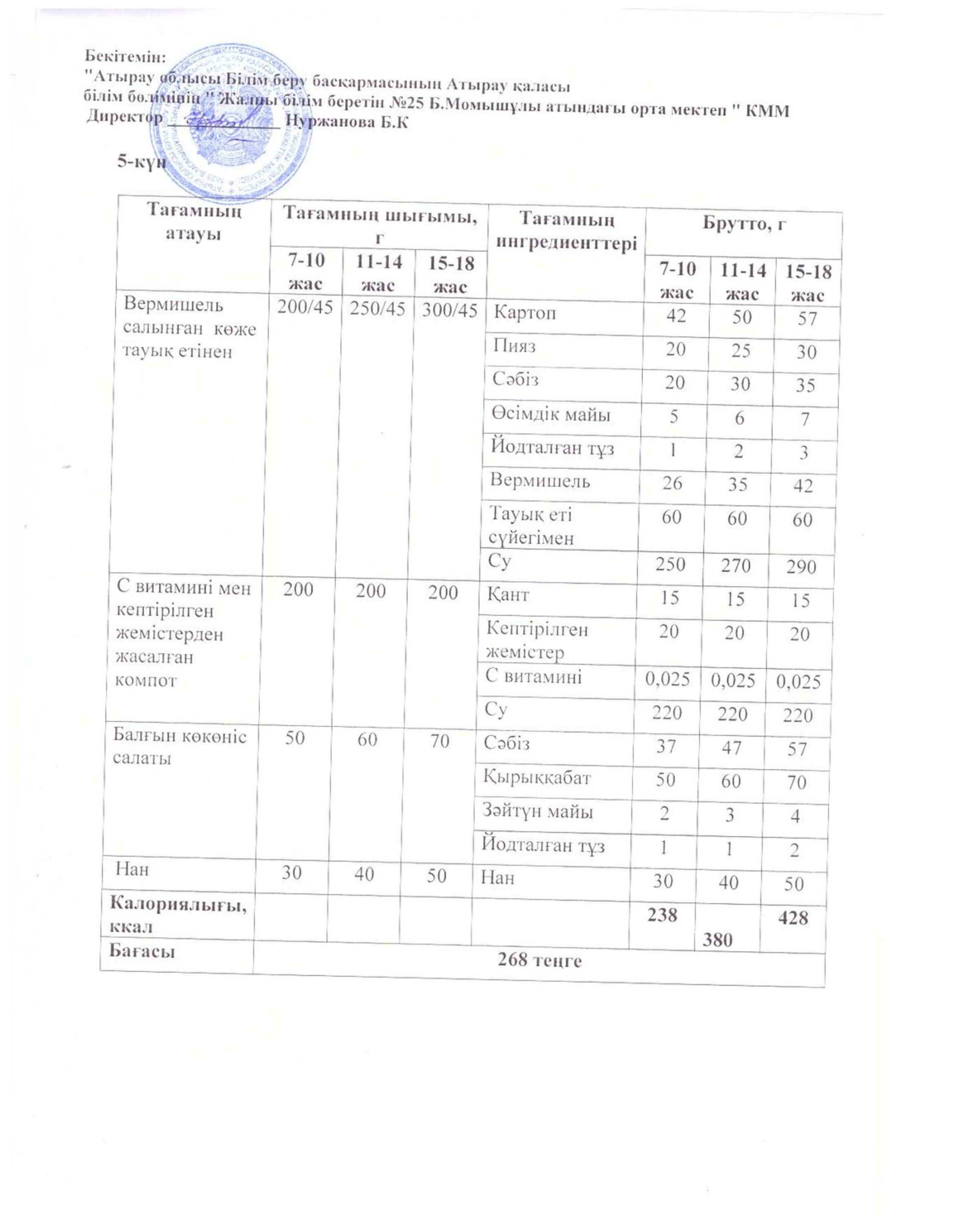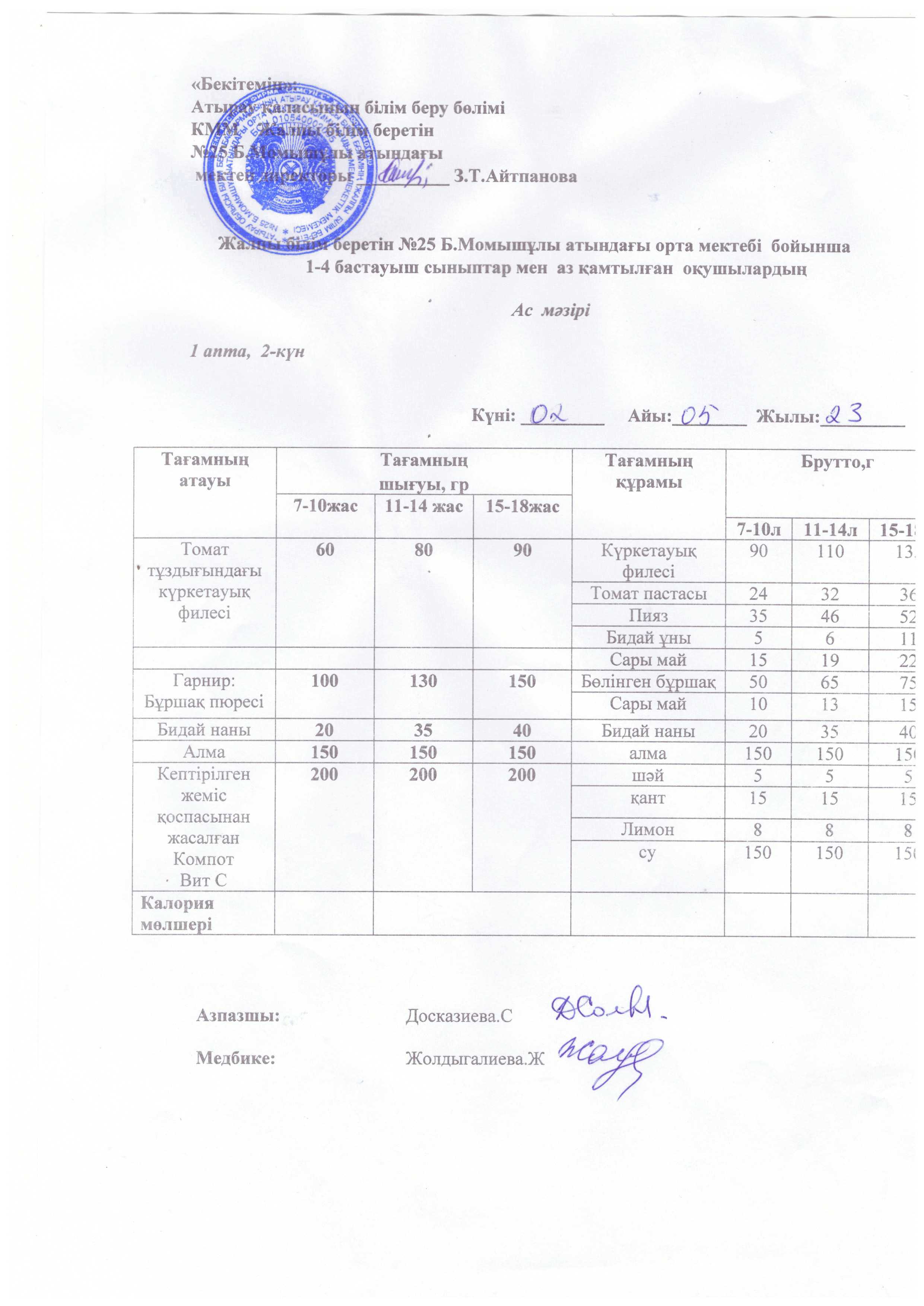 Бүгінгі ас мәзірі 16.10.2025