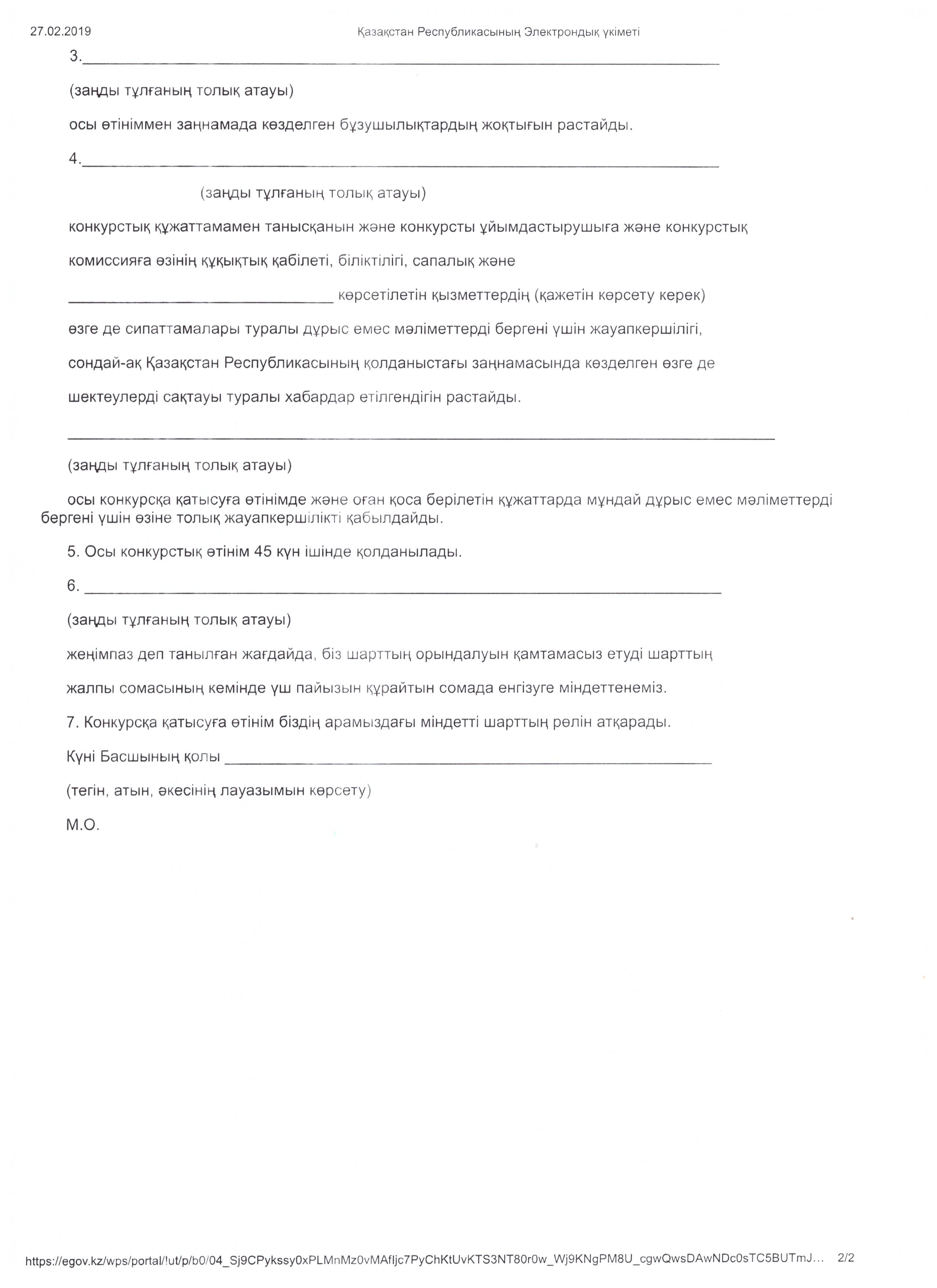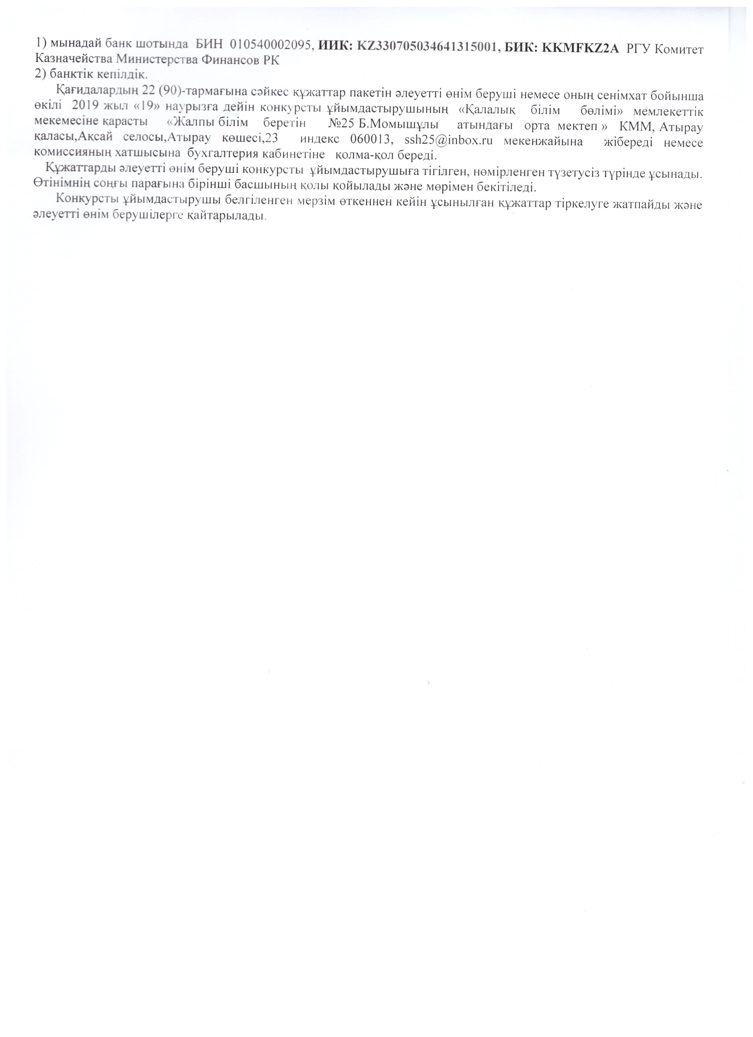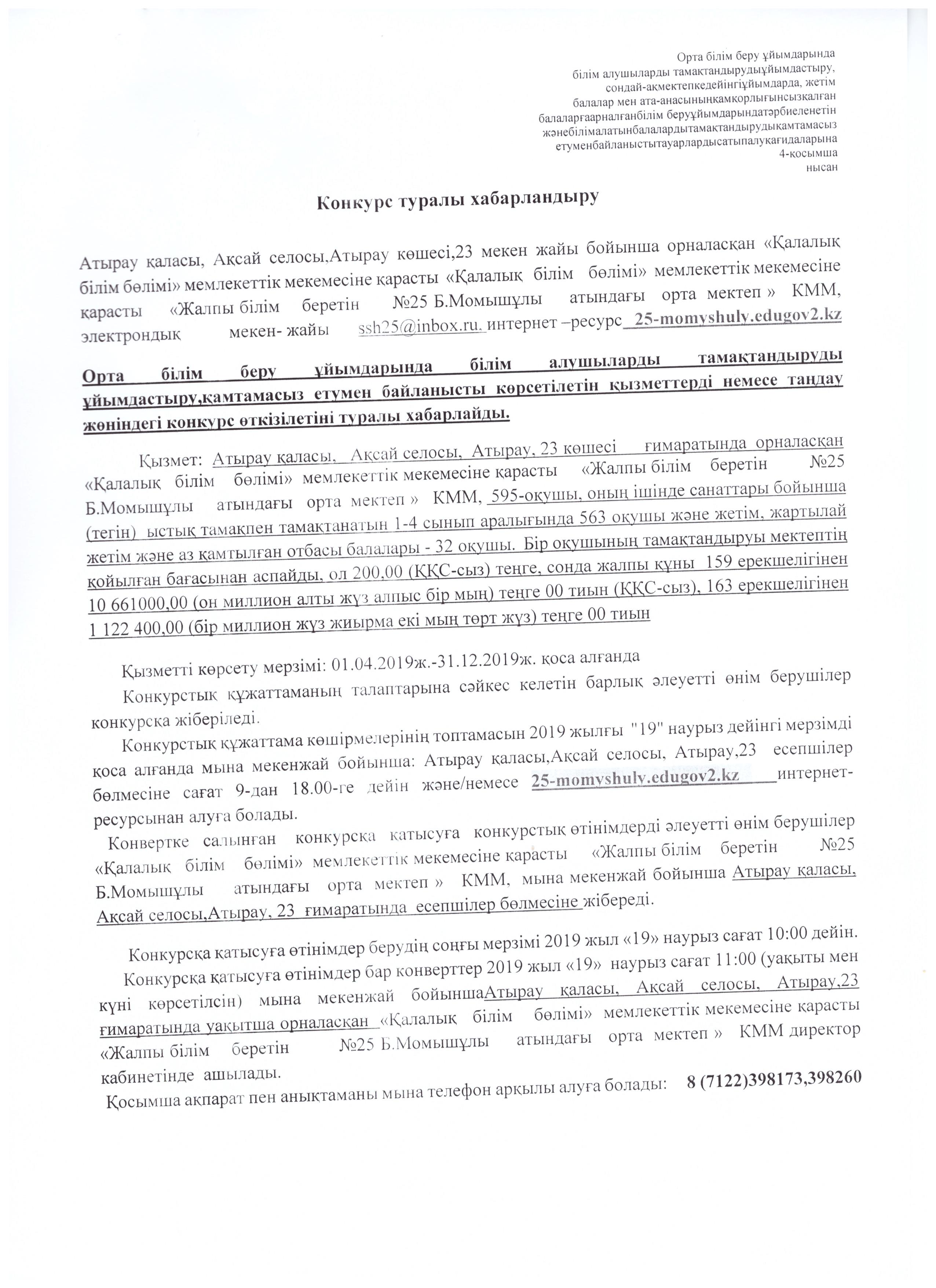Конкурс қорытындылары туралы хаттама 25.03.2019