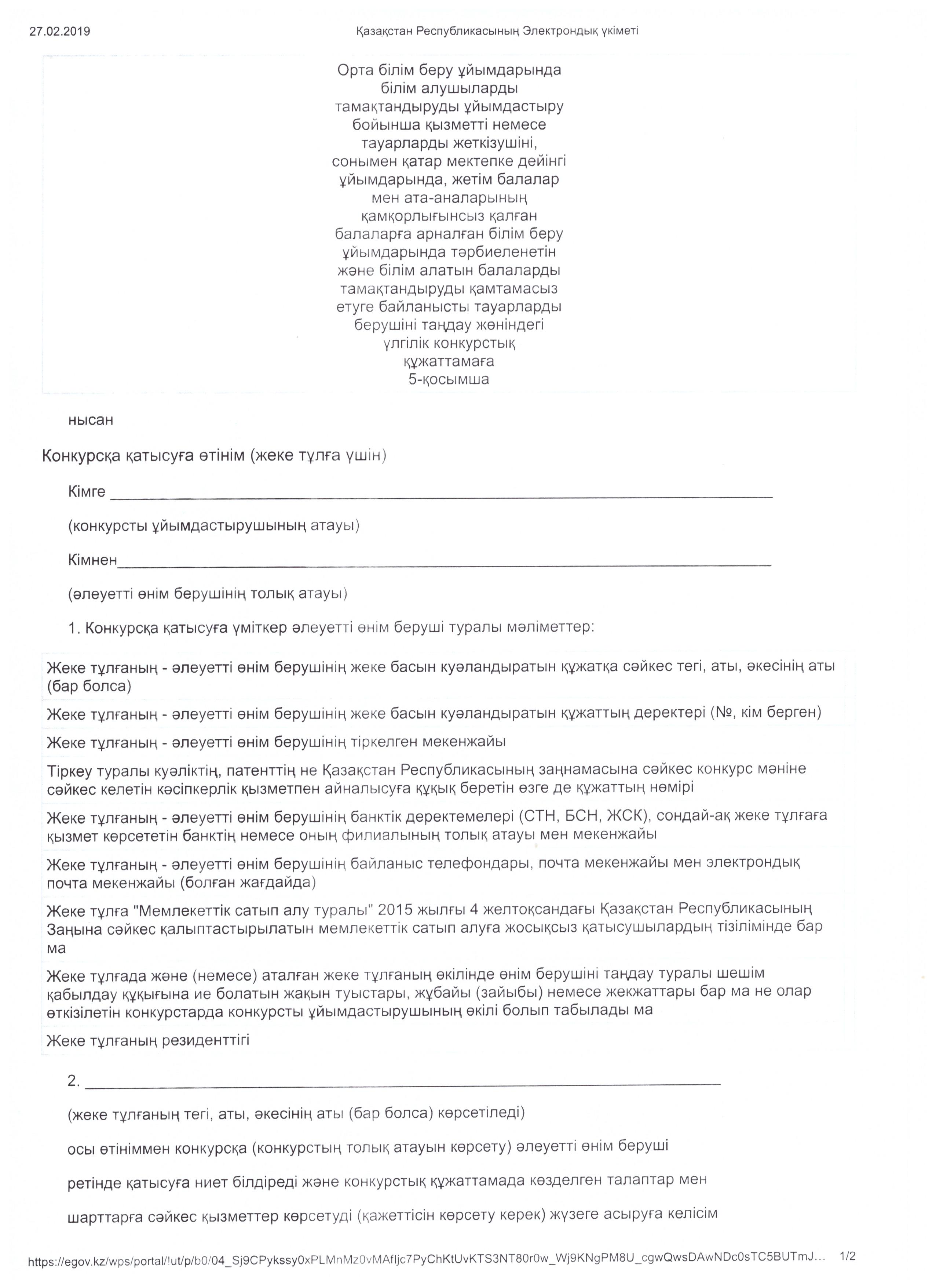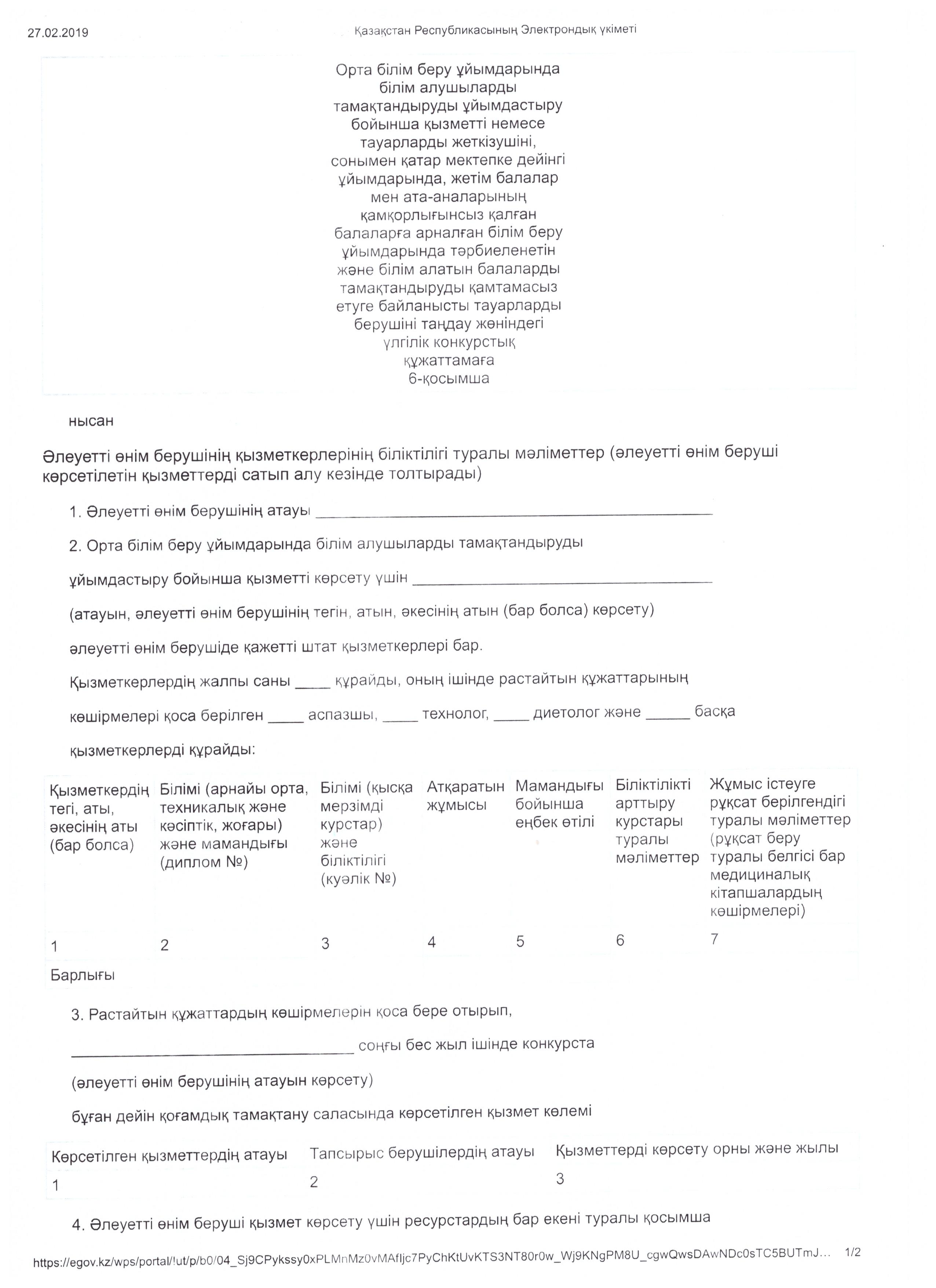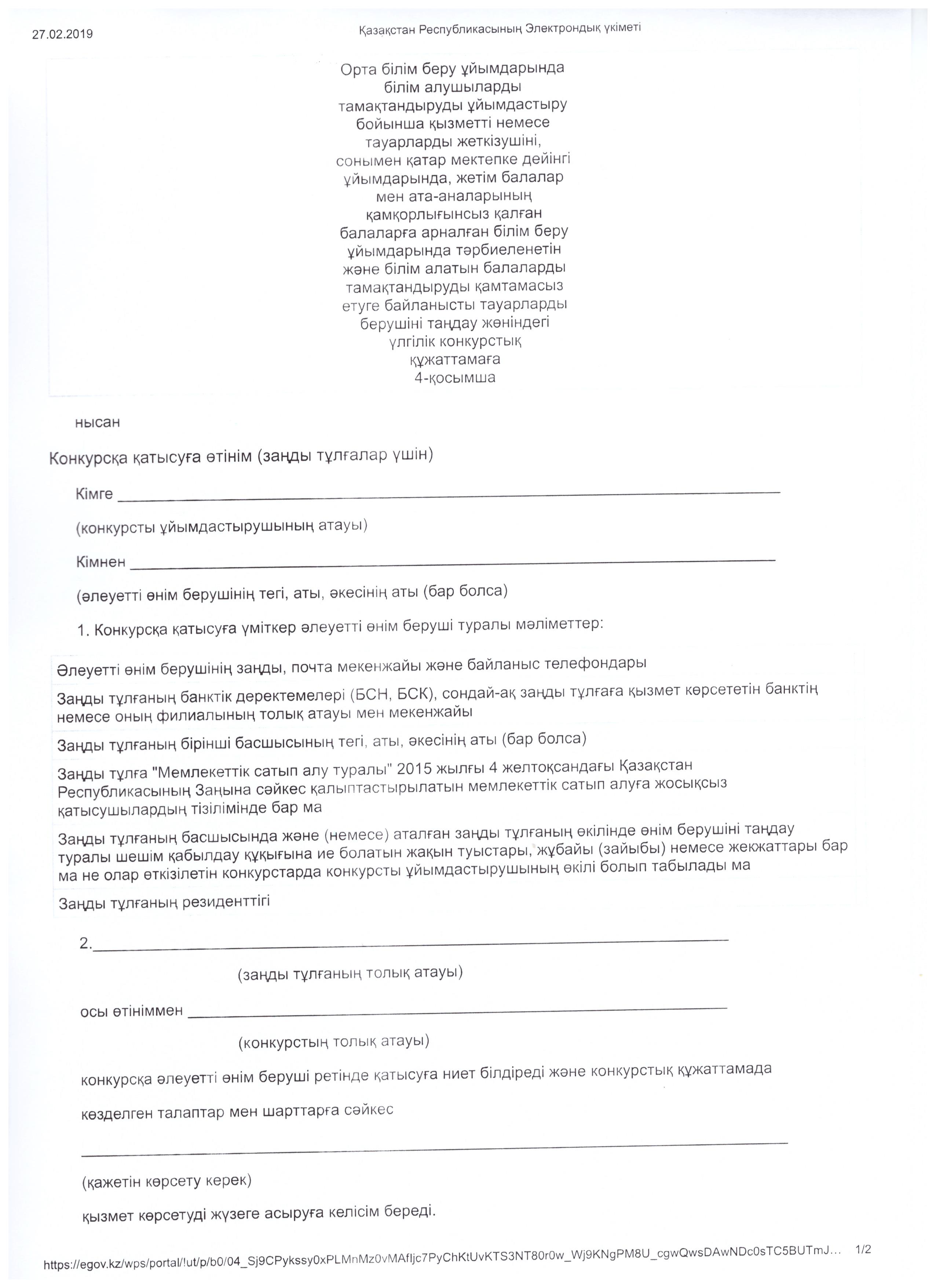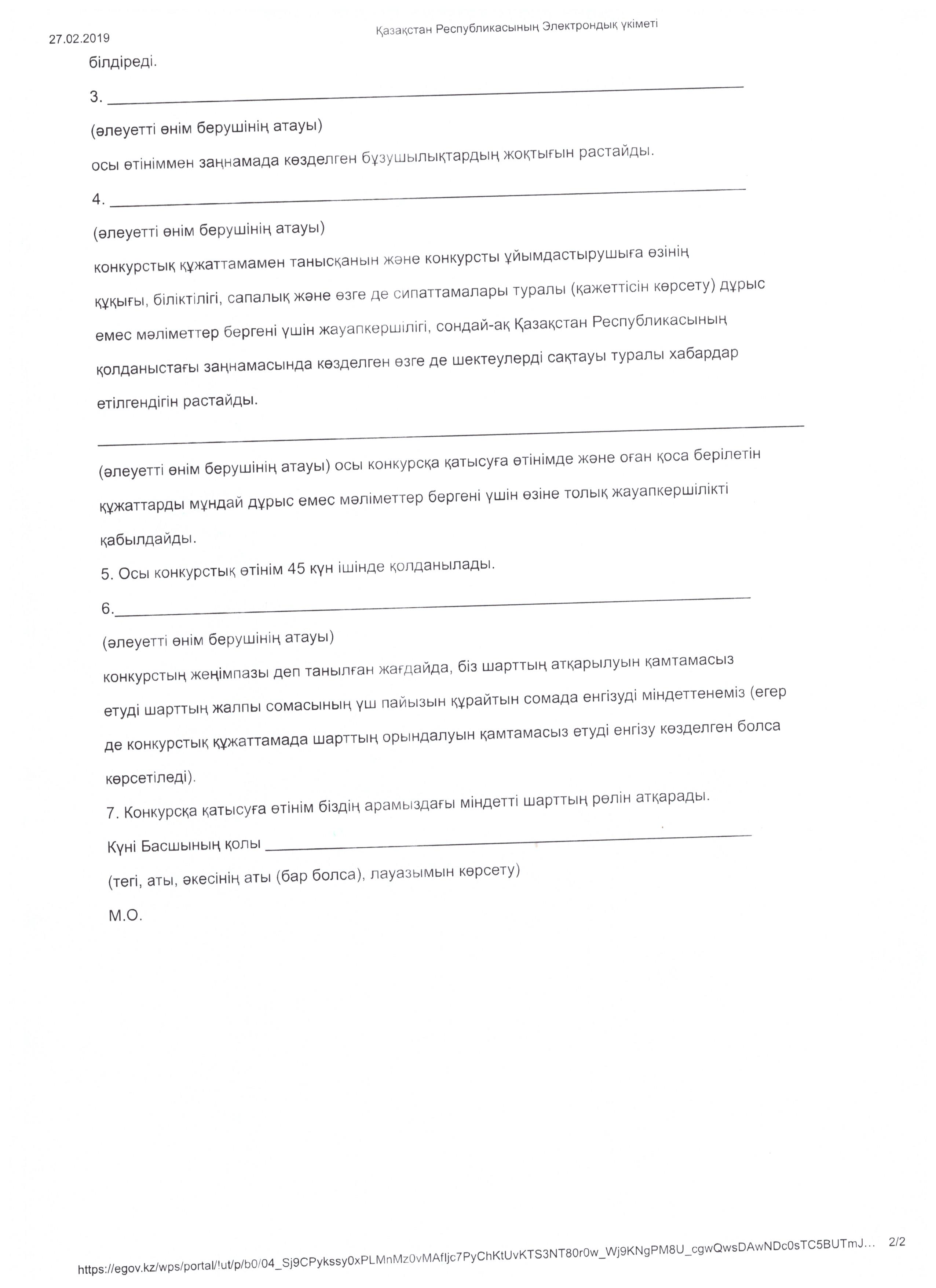 Конкурсқа қатысуға рұқсат беру туралы хаттама 20.03.2019