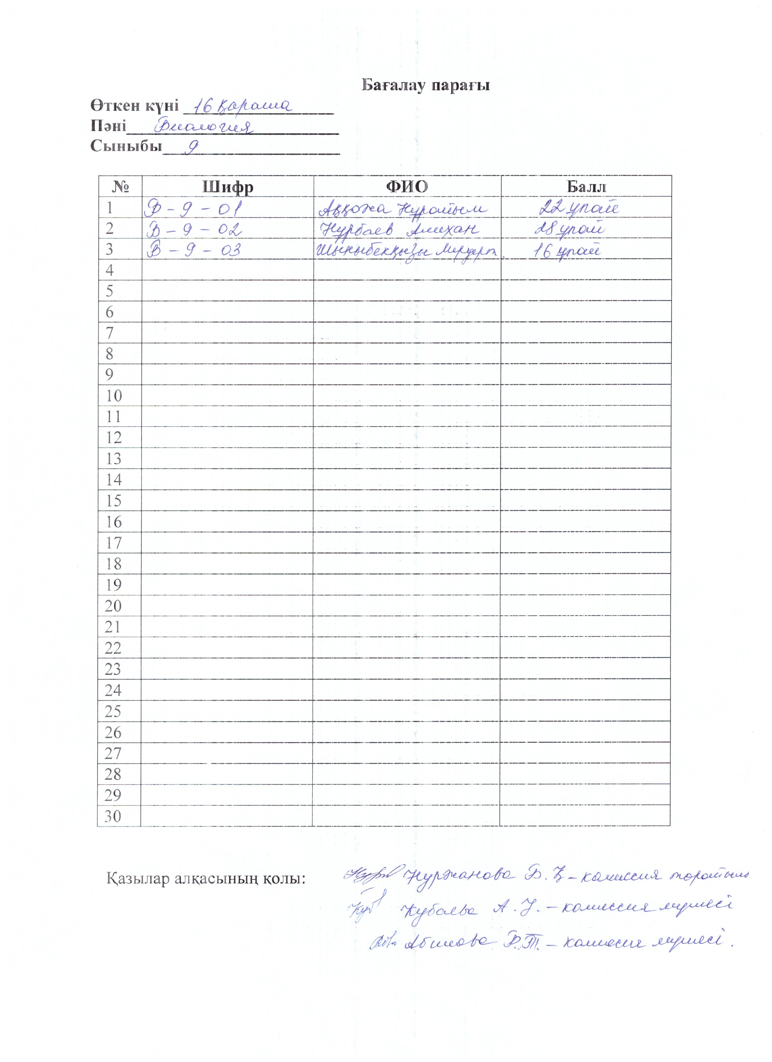 Бағалау парағы 11 сынып
