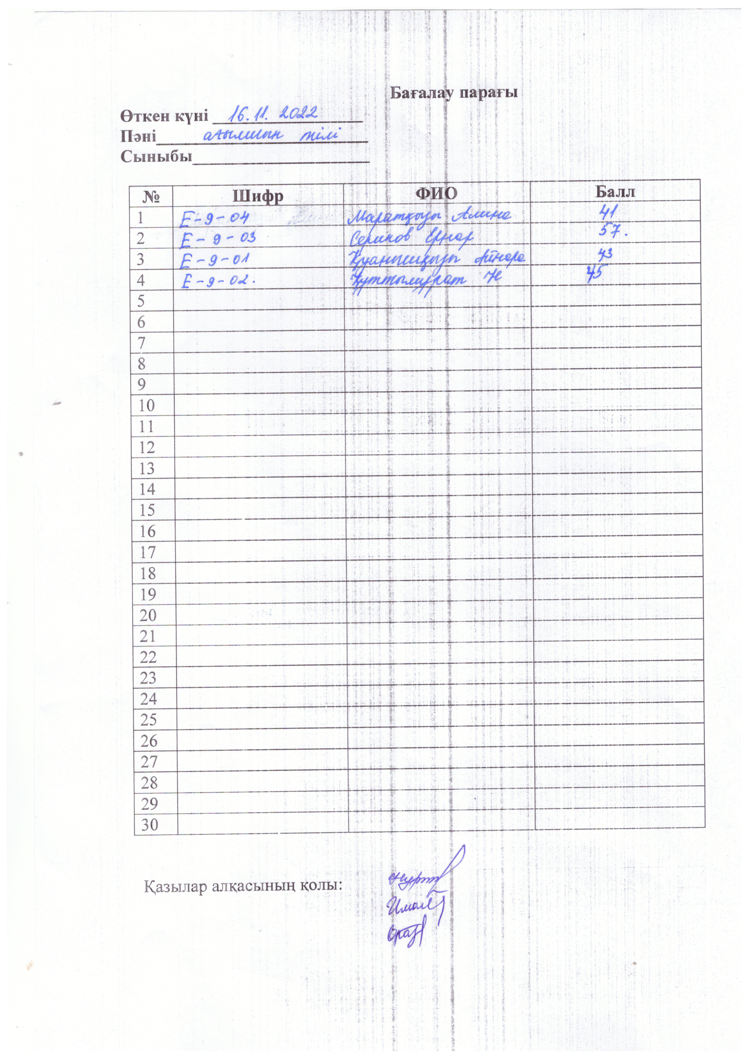 Бағалау парағы 9 сынып