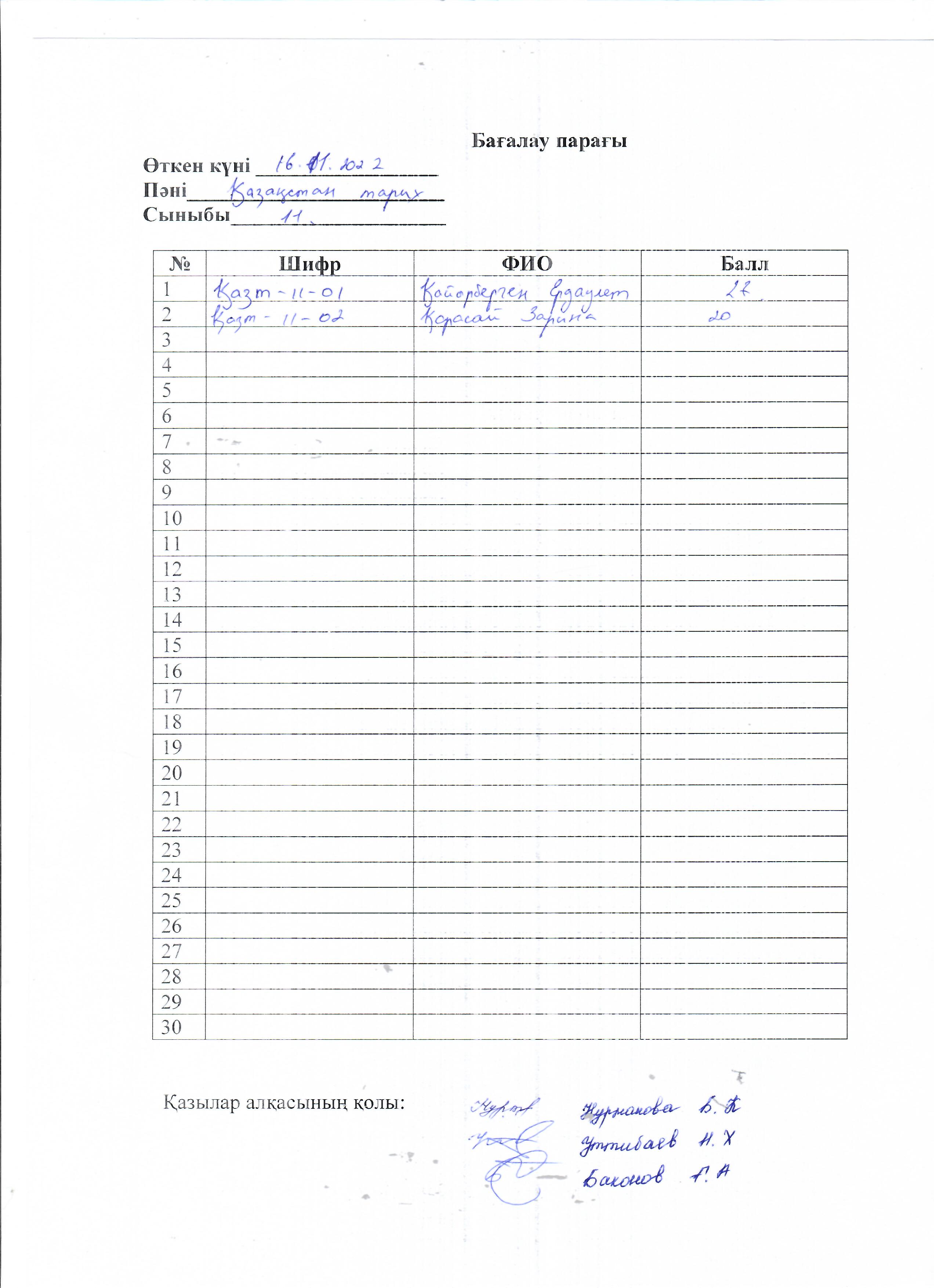 Бағалау парағы 11 сынып