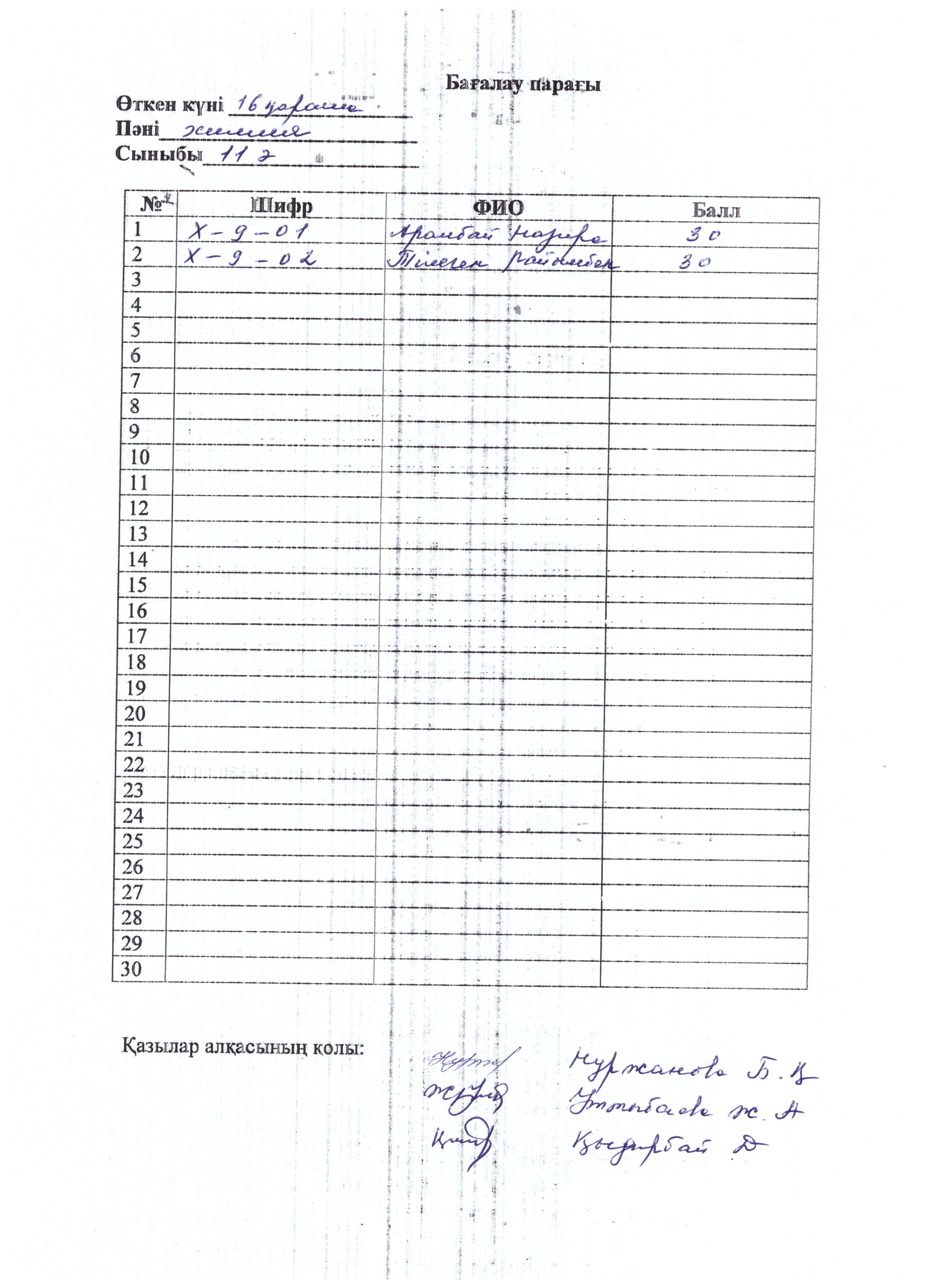 Бағалау парағы 9 сынып