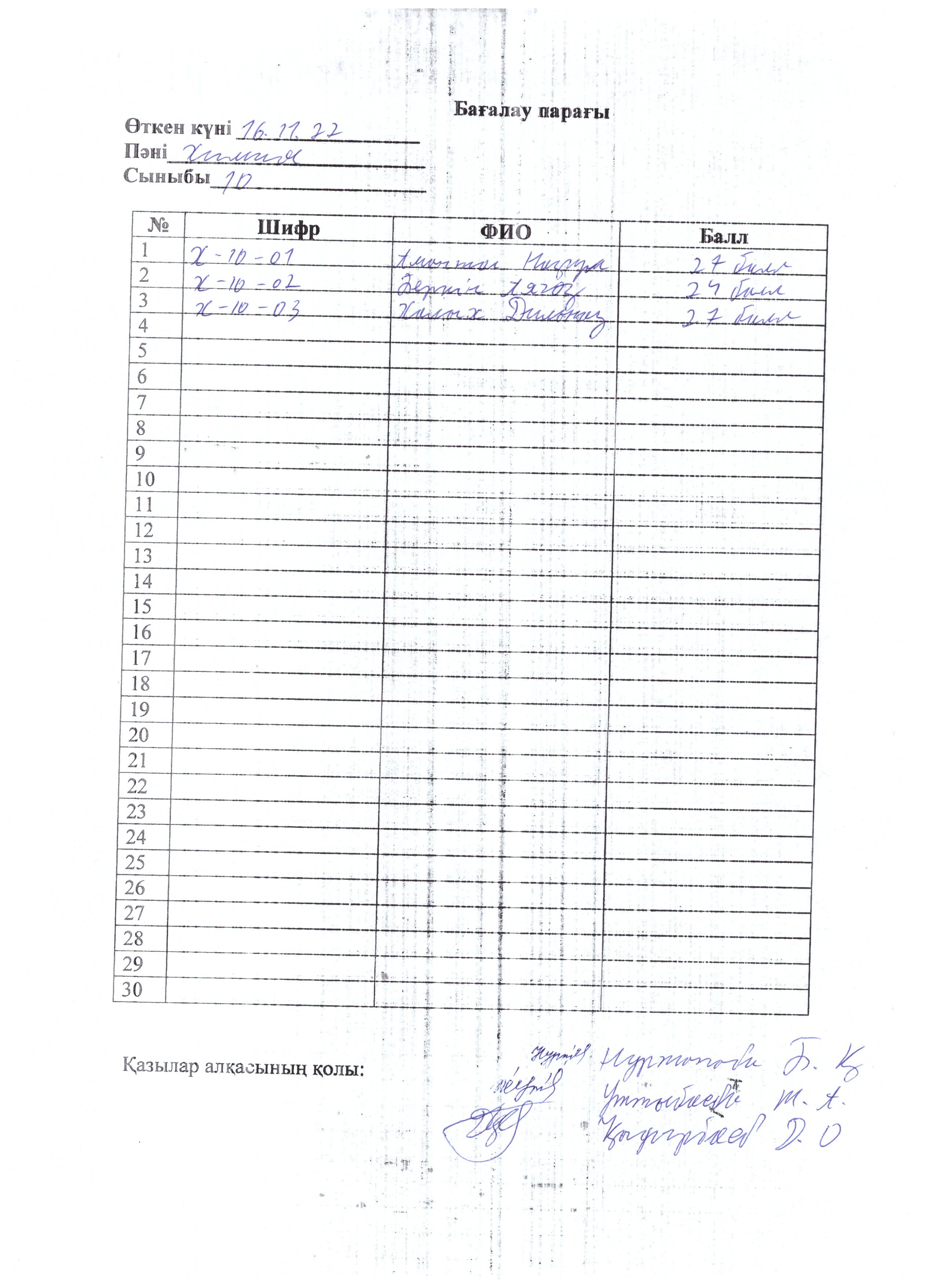 Бағалау парағы 10 сынып