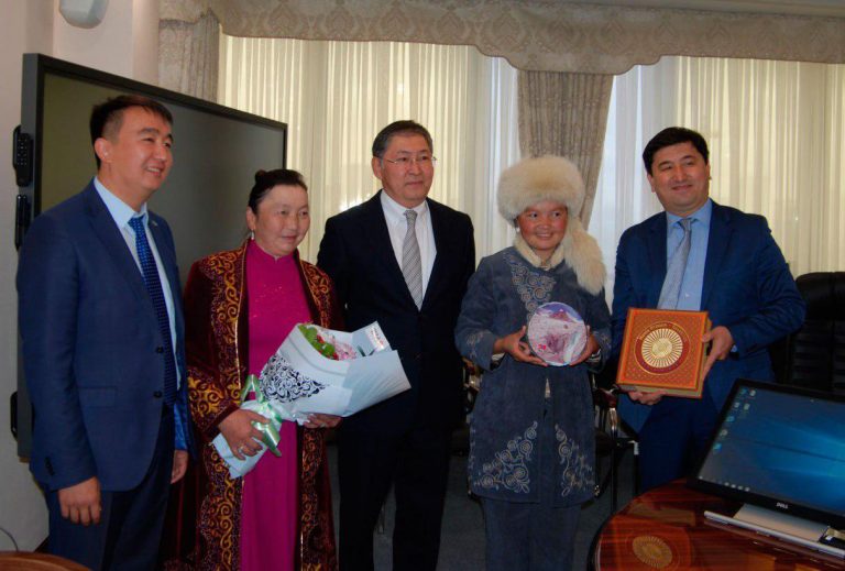 В завершении встречи Министр образования и науки Республики Казахстан Е.Сагадиев пожелал девочке больших успехов и вручил ценные подарки.