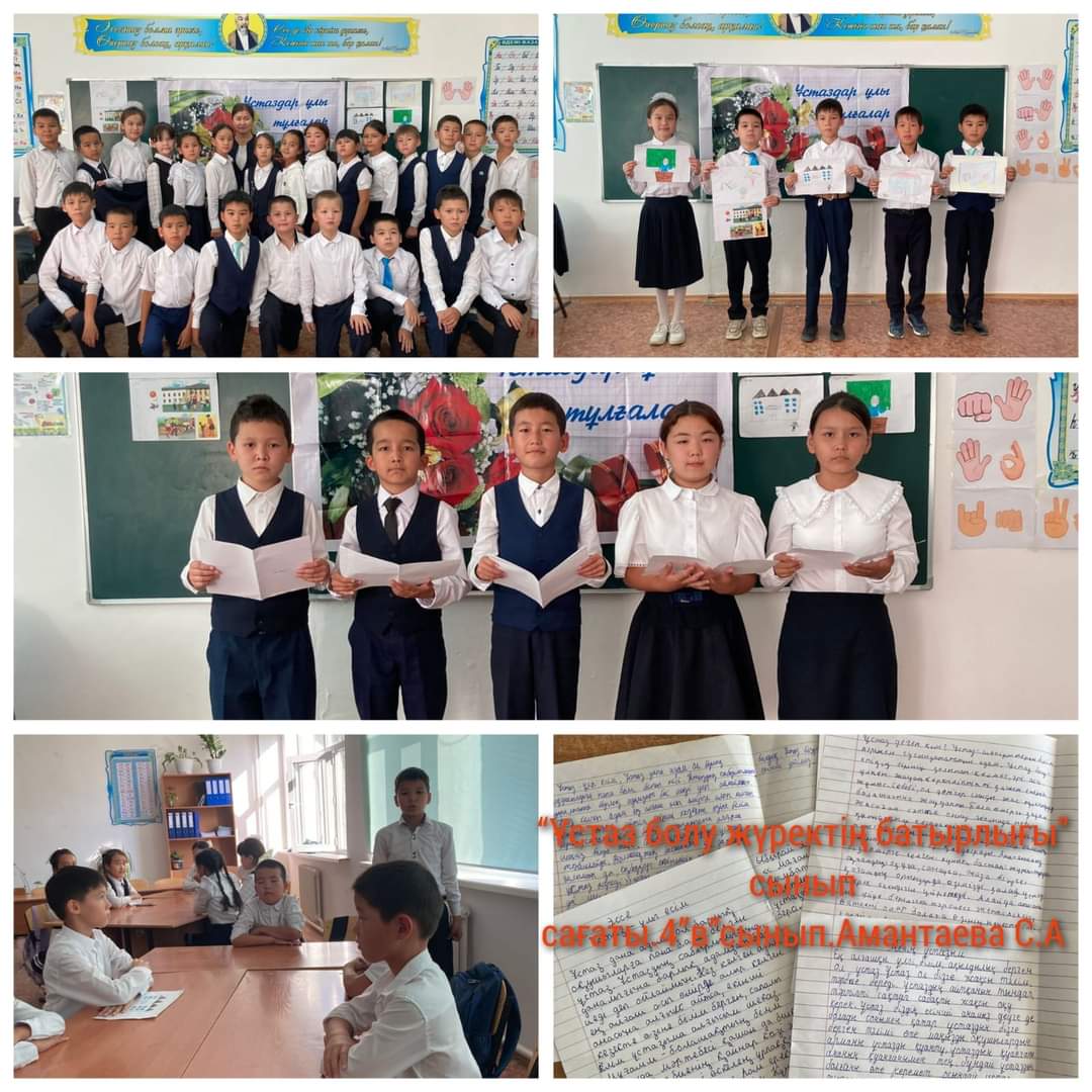 Жалпы білім беретін #25 Б.Момышұлы атындағы орта мектебі бойынша ұстаздар күніне орай, "Ұстаз болу жүректің батырлығы " тақырыбында бастауыш сыныптар аралығында өткізілген сынып сағаттары.