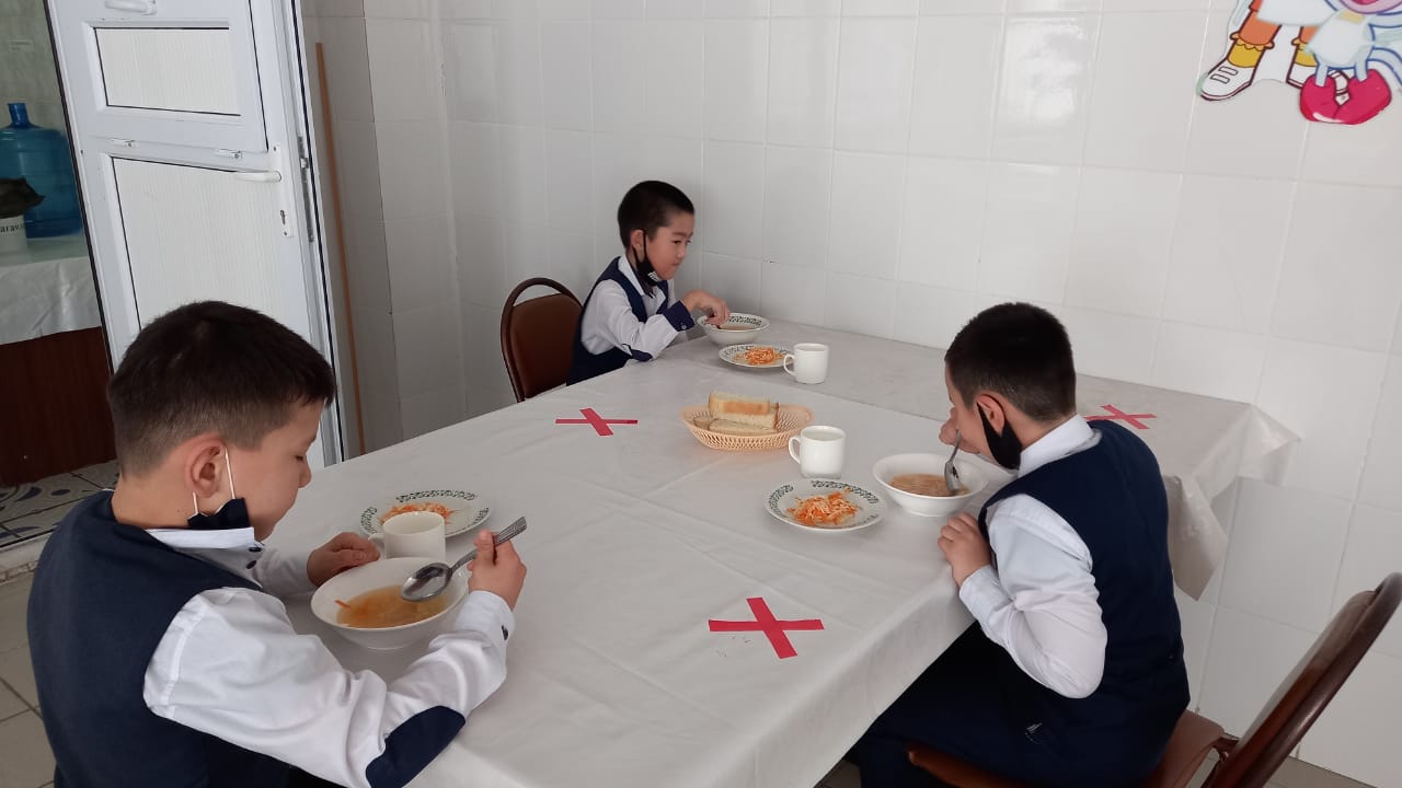2021-жылдың 22- ақпанынан бастап мектебімізде кезекші сыныпта оқитын бастауыш сынып оқушылары мен әлеуметтік көмекті қажет ететін отбасы балаларына бір мезгіл тегін ыстық тамақ беру қайтадан қолға алынды