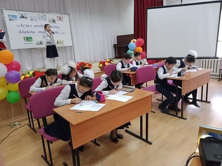 4-наурыз күні мектебімізде қазақ тілі пәні мұғалімдерінің ұйымдастыруымен “Асыл сөзді іздесең, Абайды оқы ерінбе…”атты сайыс өтті. Сайысқа қатысқан 5-6 сынып оқушылары ақын өлеңдері мен шығармаларын жатқа оқыды. Бұл шарада адамзаттың ақылшысы болған Абай шығармаларының өміршеңдігіне, әр кезеңде де өз оқырманының жүрегіне жол табатынына , өшпес мұра боп қалатынына тағы бір мәрте көз жеткіздік.