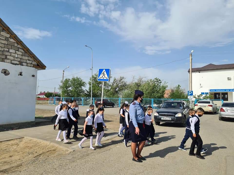 Тәрбие ісі орынбасарларының ұйымдастыруымен мектеп инспекторы, полиция капитаны Ж.Ә.Сапенованың қатысуымен бастауыш сынып оқушыларына қарапайым жолда жүру ережелерін түсіндірді. Оларға көше бойында қалай жүріп тұру қажеттігін, бағдаршамдар мен арнайы жолақтардан өту тәртібін де түсіндіріп, ақ жол тіледі .